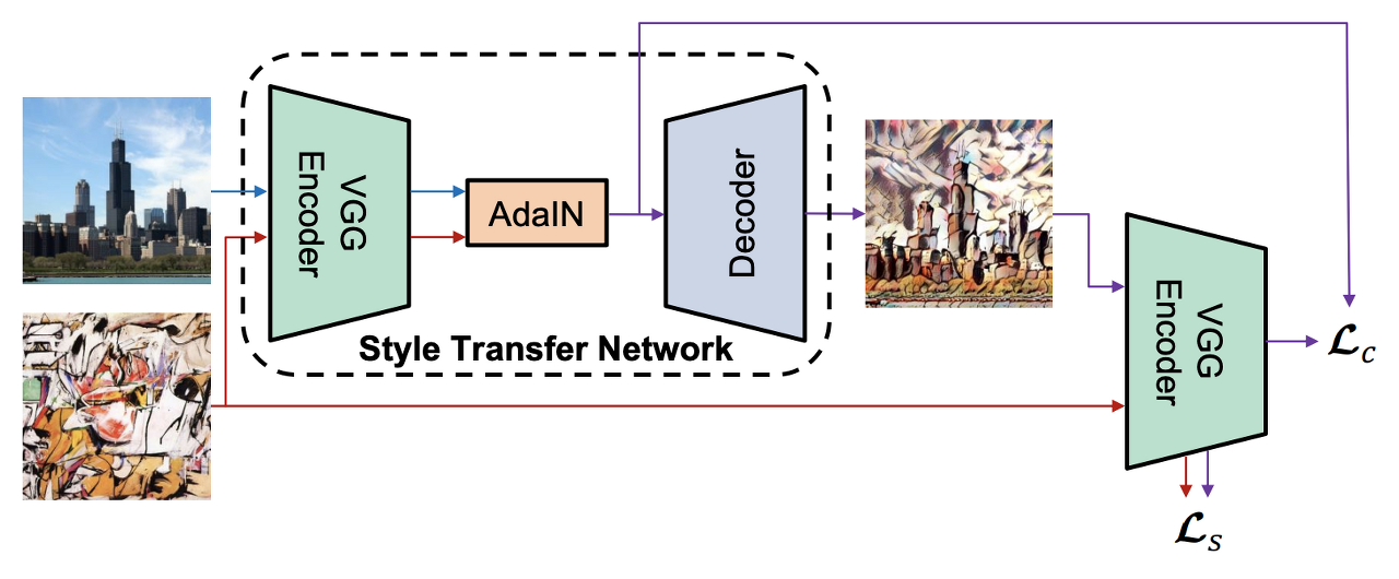 AdaIN은 Instance Normalization과 같은 다른 정규화(normalization) 방법과는 달리 오직 스타일과 콘텐츠 이미지의 통계로만 수행된다. 그리고 학습되는 파라미터는 쓰이지 않는다. 이는 학습 데이터에서 한 번도 본 적 없는 스타일로 변환할 수 있도록 한다.